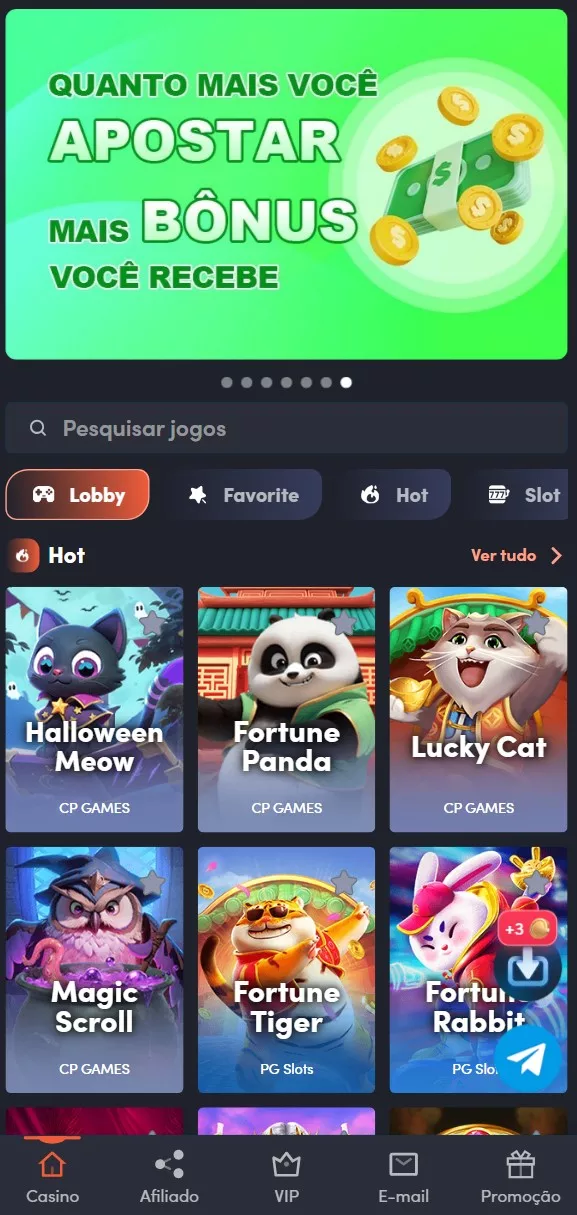 LoginBaixarCadastre-seNotíciasAfiliadoSobre nósPromoçõesFale conoscoConvidar amigosTermos e CondiçõesJogo Responsável